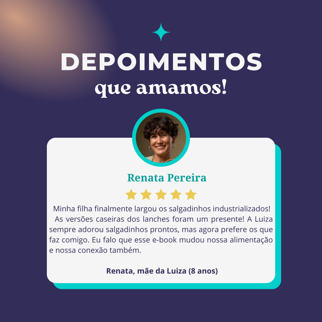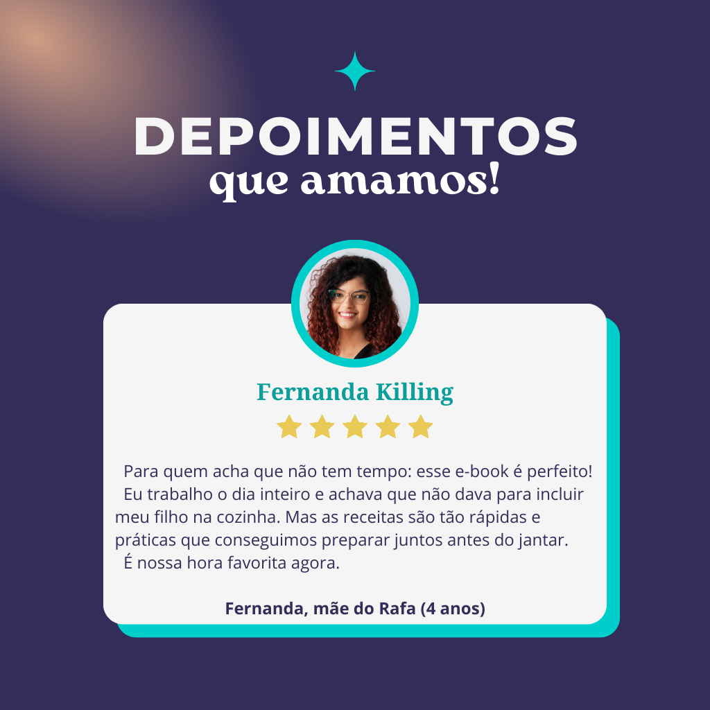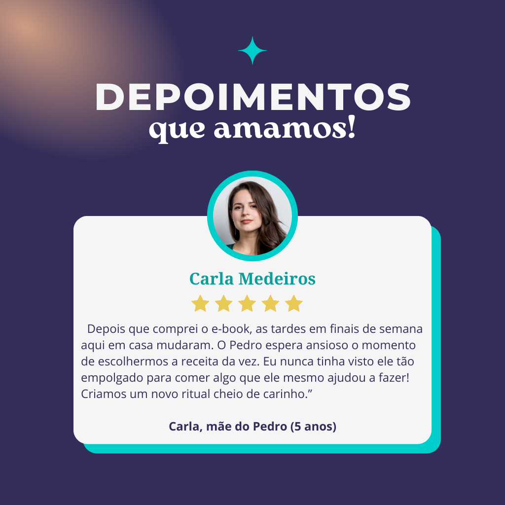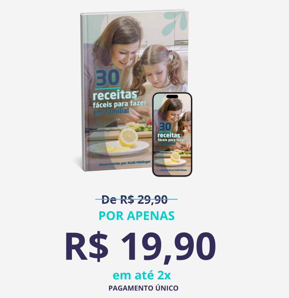Você receberá o e-book digital 30 Receitas Fáceis Para Fazer Em Família, em PDF, com receitas rápidas e práticas, pensadas para pais, filhos e netos cozinharem juntos.